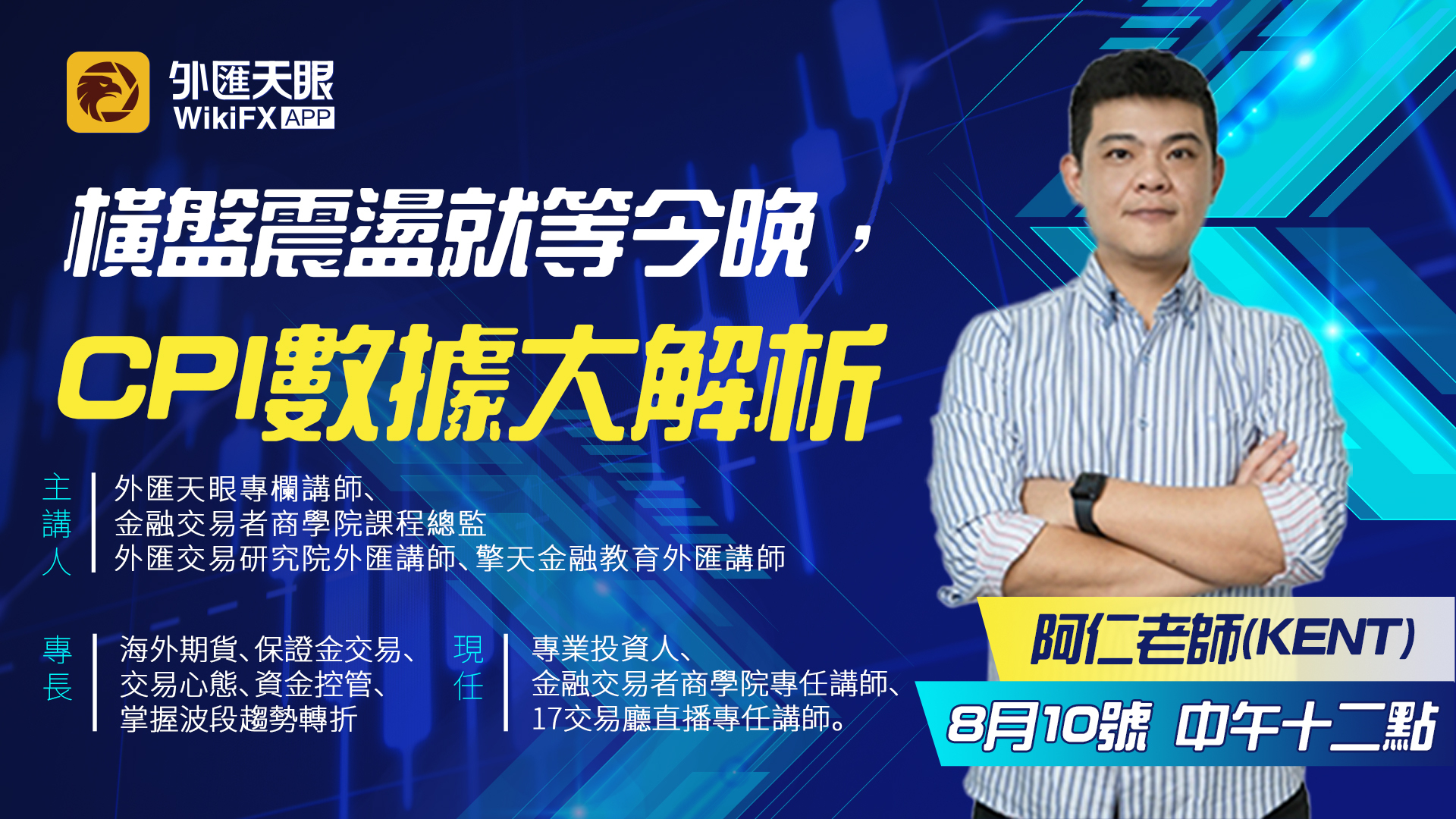 外匯天眼專欄講師 金融交易者商學院課程總監 外匯交易研究院外匯講師 擎天金融教育外匯講師 現任:專業投資人、金融交易者商學院專任講師、17交易廳直播專任講師。 專長:海外期貨、保證金交易、交易心態、資金控管、掌握波段趨勢轉折